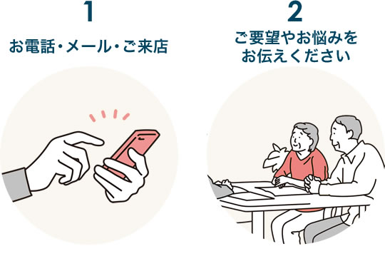 当店では、お客様のご要望を細やかにお伺いして、それぞれのお客様に喜んでいただけるお墓の設計、ご提案を大切に考えております。「このようなイメージにしたい」、「こういったお墓がいいな」などのご要望を、ぜひお聞かせください。