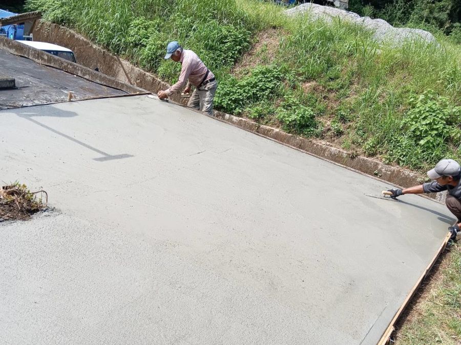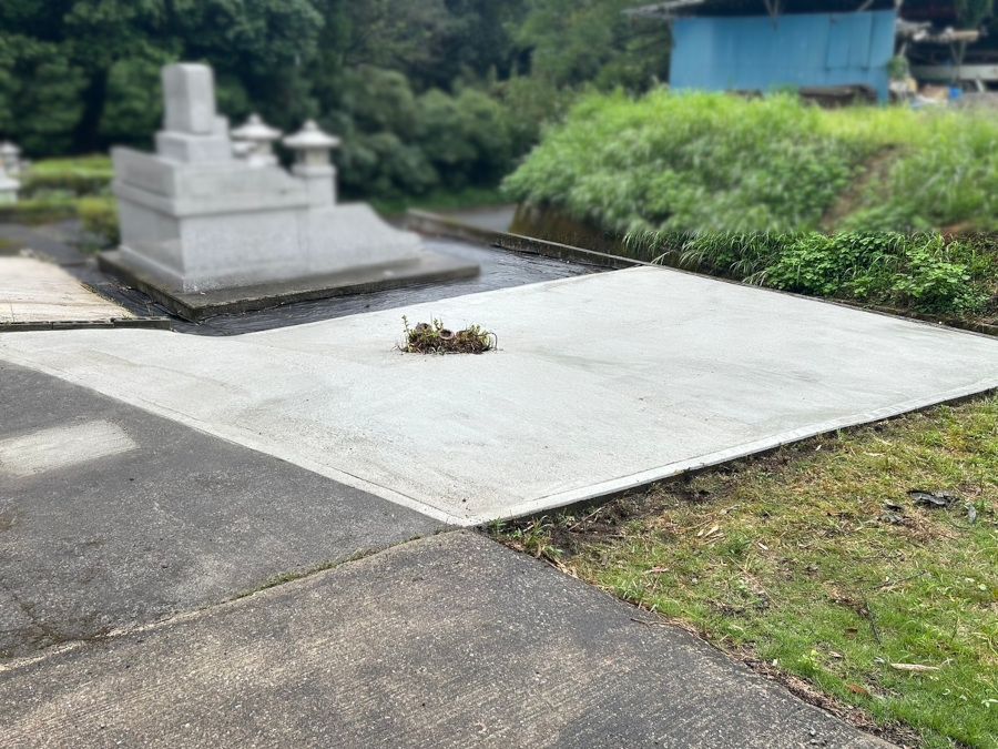 墓地の広い敷地にコンクリートを打設しました。