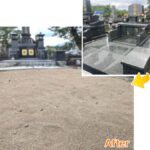 お墓手前は、灯篭を置くよりも丸い玉を置いてほしいというご希望でした。ほかとは少し違った雰囲気が出て、唯一無二のお墓になりました。ここにもインド産アーバングレーを使用しています。