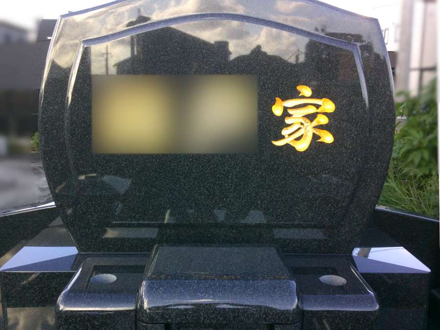 人気のあるデザイン墓石です。使用している石は、インド産のキングという黒御影石です。文字彫刻は、キングを選ばれた時から金箔を入れることをご希望でした。