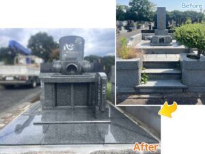 維持管理に悩まれていたお墓を、コンパクトでお手入れのしやすいデザイン墓石に建て替え。熊本市営桃尾墓園