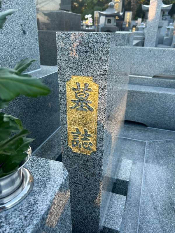 墓誌です。こちらも同様にクリーニングをして金箔を入れ直しています。額字の部分も入れ直しています。