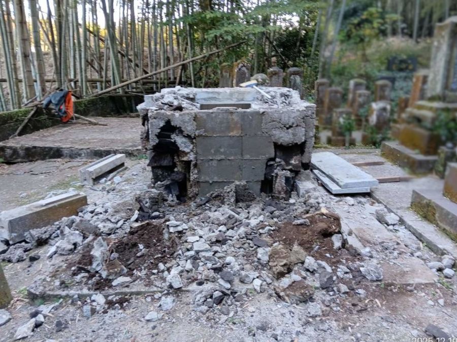 • 熊本市営桃尾墓園にてお墓の解体・墓じまい工事。県外にお住まいのお客様