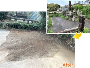 県外に住まれているお客様より、「永代供養を考えている。熊本市内のお墓じまいをしたい」とご相談いただきました。お墓本体、外柵、すべて撤去し、更地に戻しました。遠方からのお問い合わせも、お電話やメールにてお墓の場所をお知らせいただけましたら、ご対応可能です。